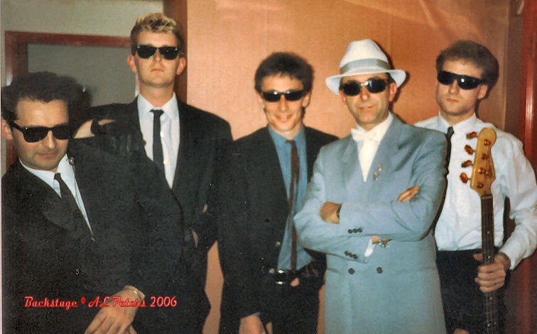 Waitin to go on stage in 1988 - Where? Mike (sax) Tony (dms) Bri (gtr) AL (vocs/tpt) Chris (bs)
